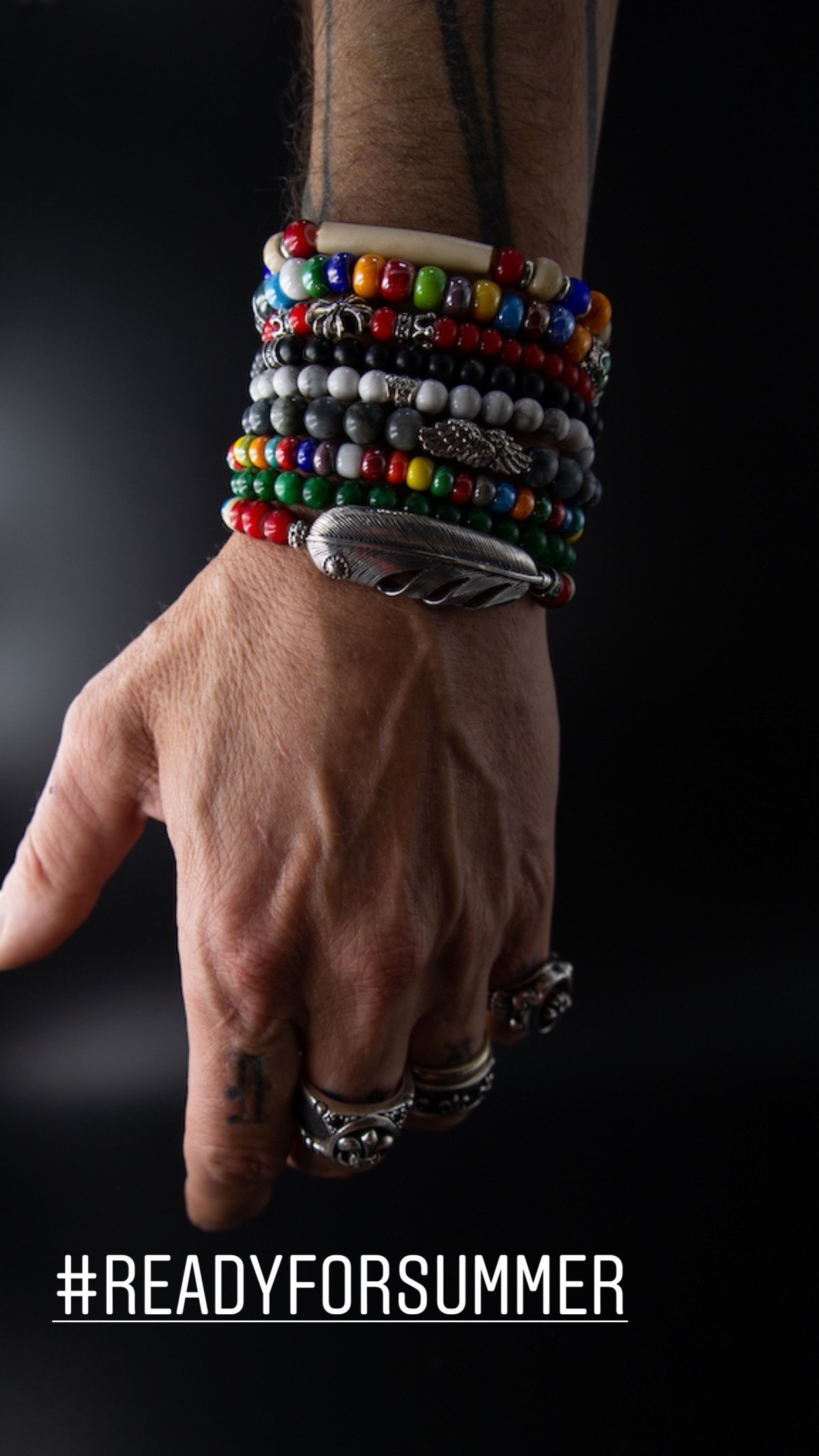 Bracciale in vetro di Murano 8mm elementi in bronzo bianco