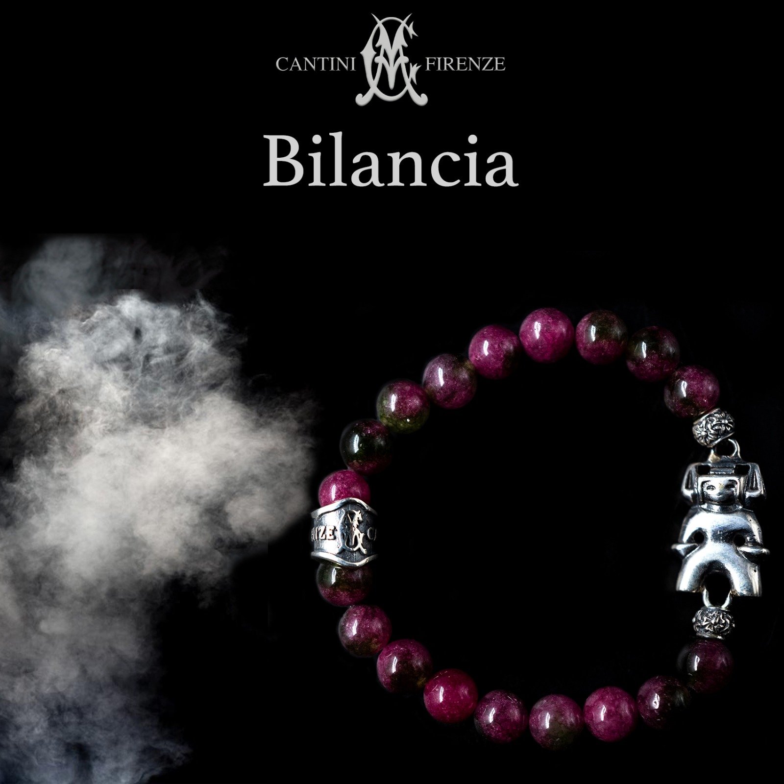Bracelet in natural Turquoise stones 8mm, with accessories in 925 Silver depicting a microsculpture of the Libra entirely handmade