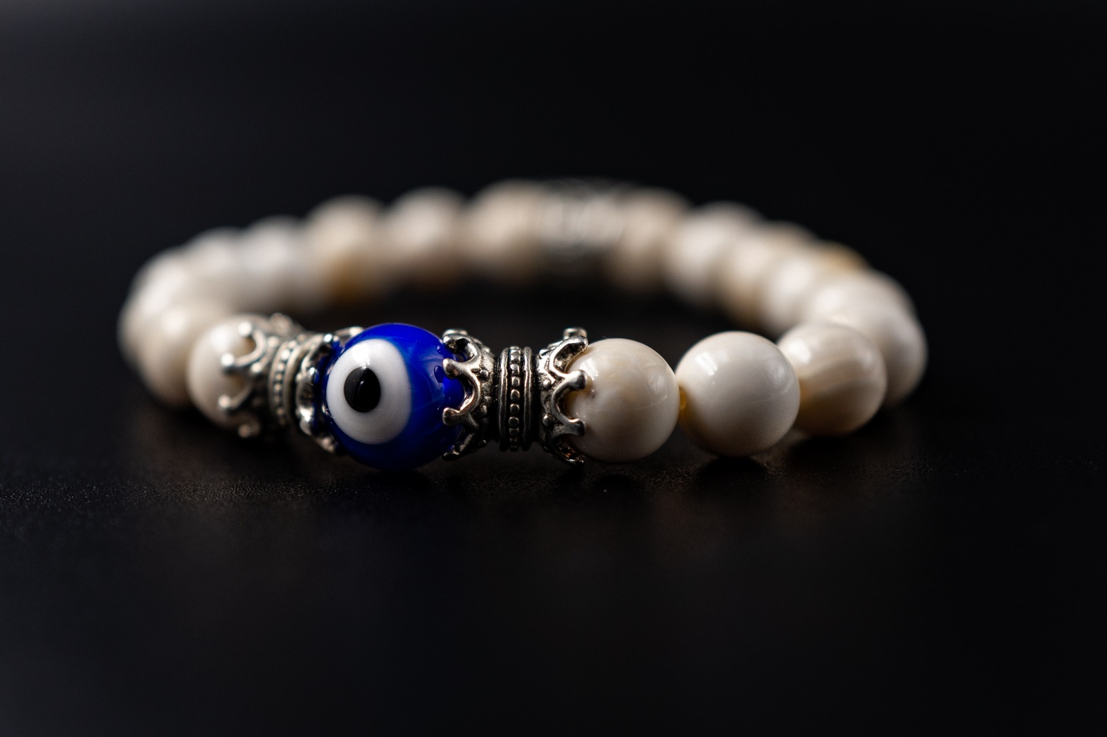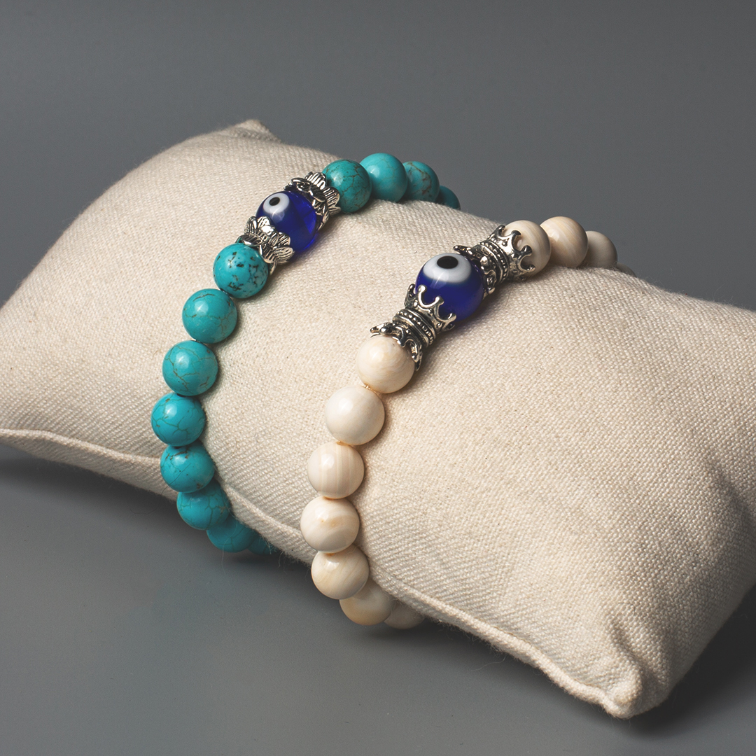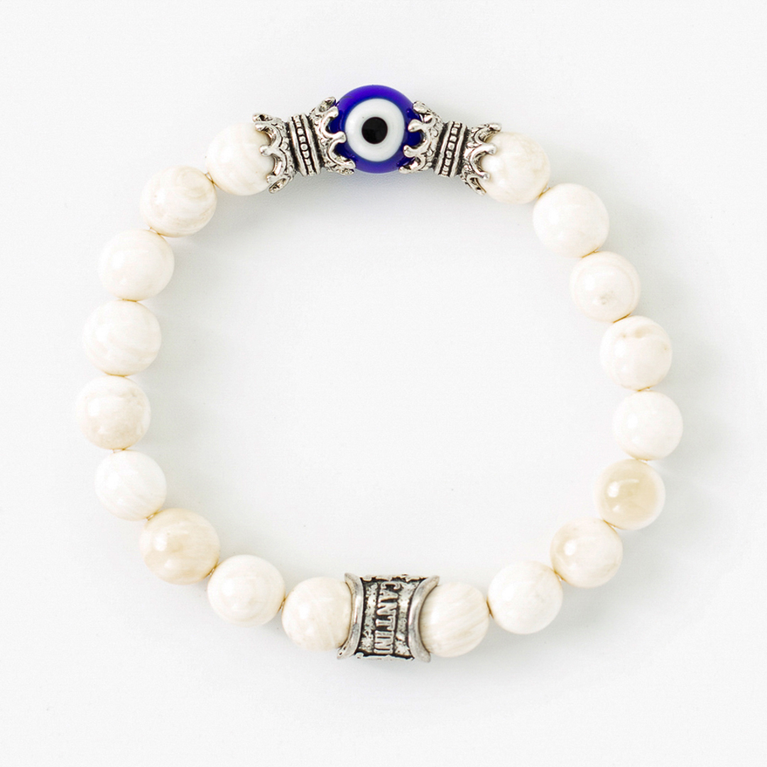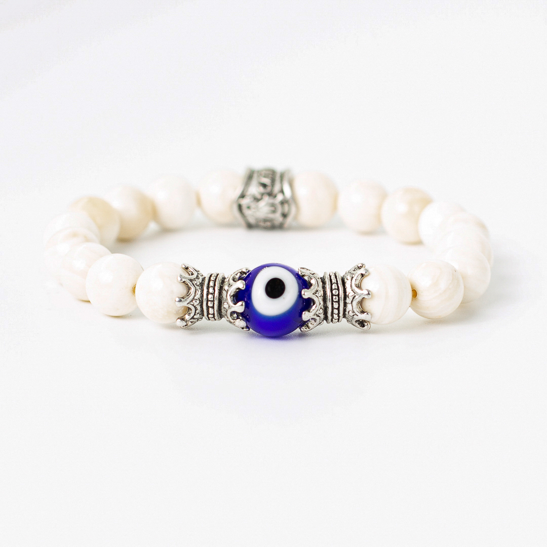 Ocean shell bracelet 8mm and accessories in white bronze and glass eye