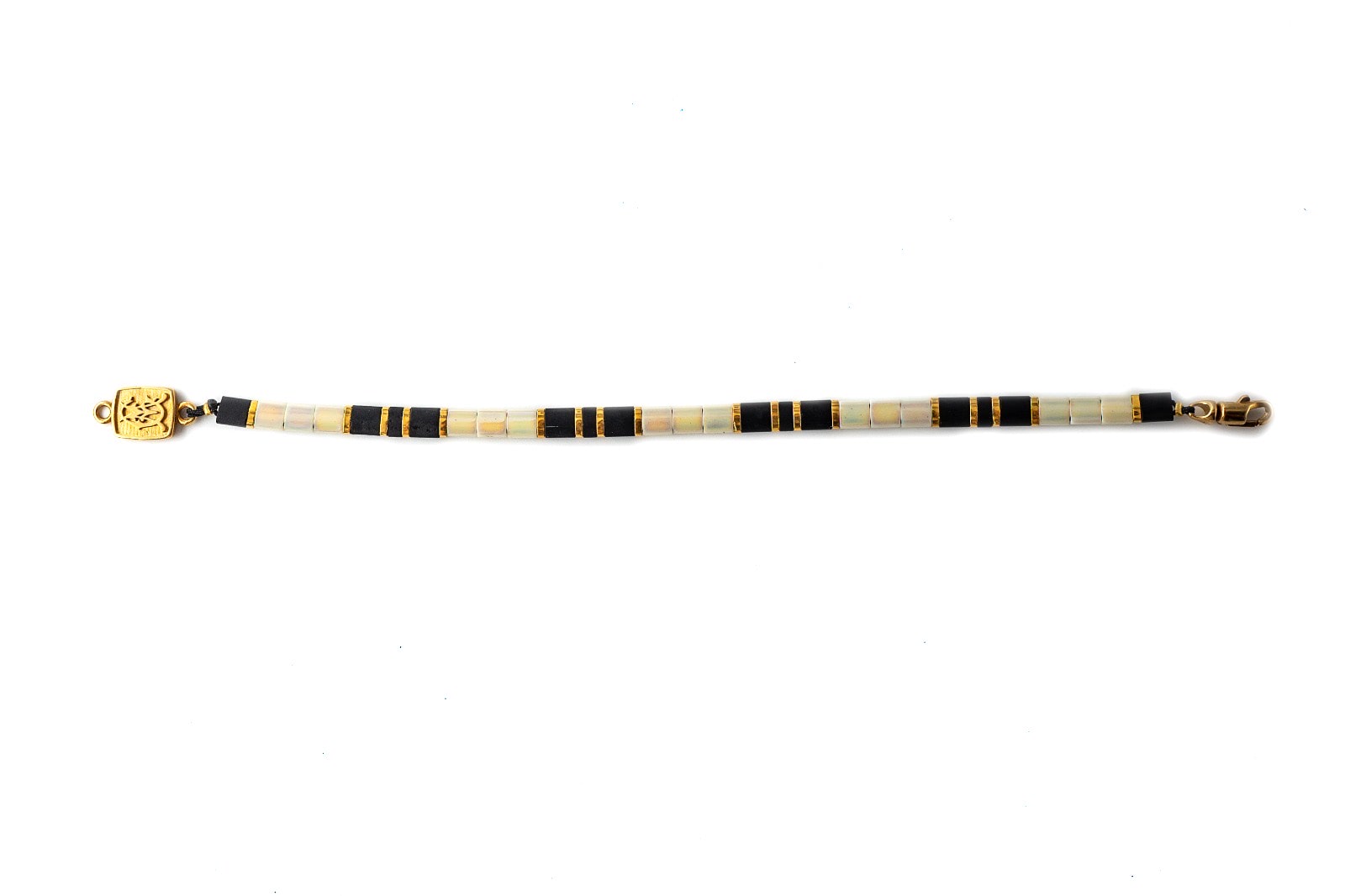 Bracelet with 24K plated Japanese “Miyuki” glass elements, Vintage bronze clasp