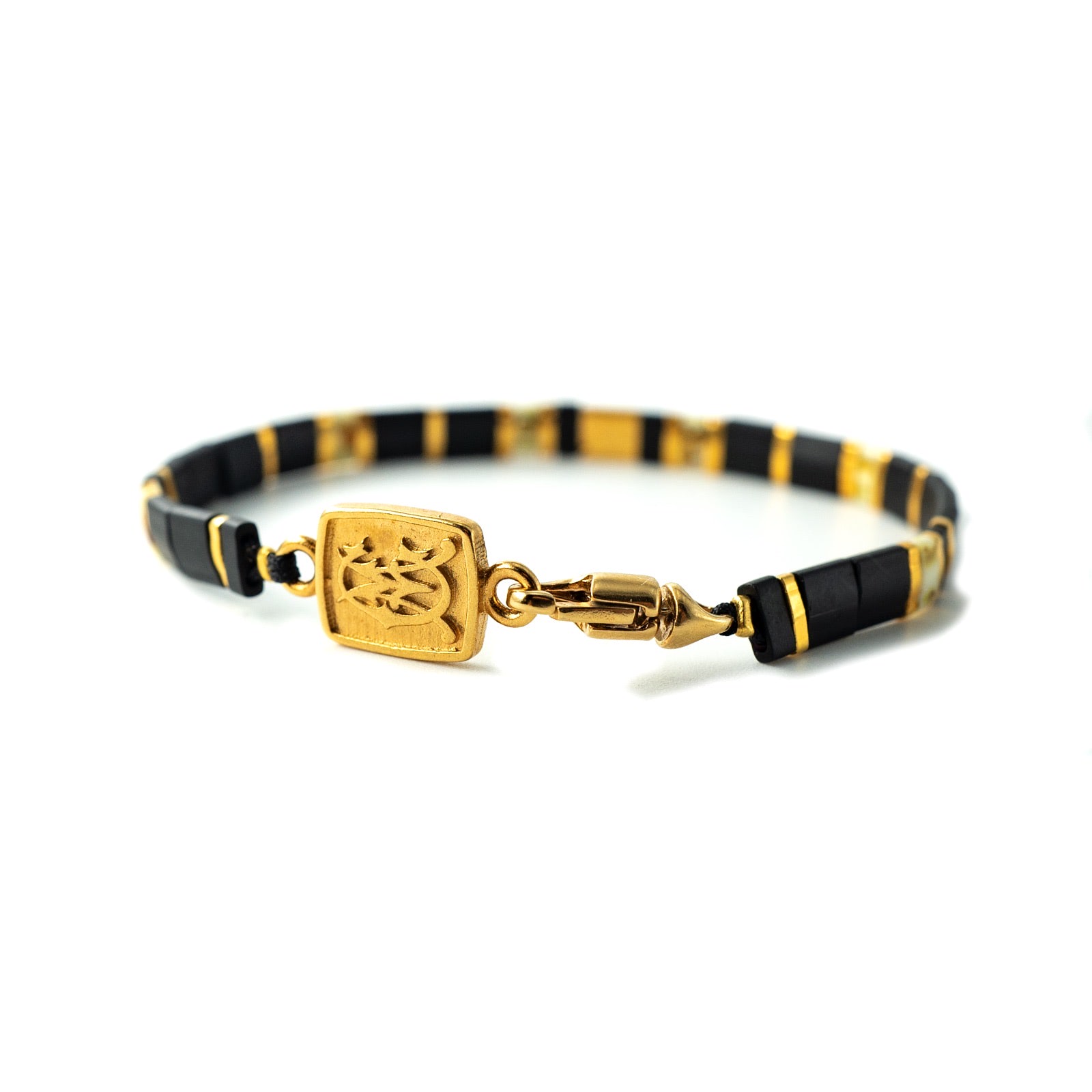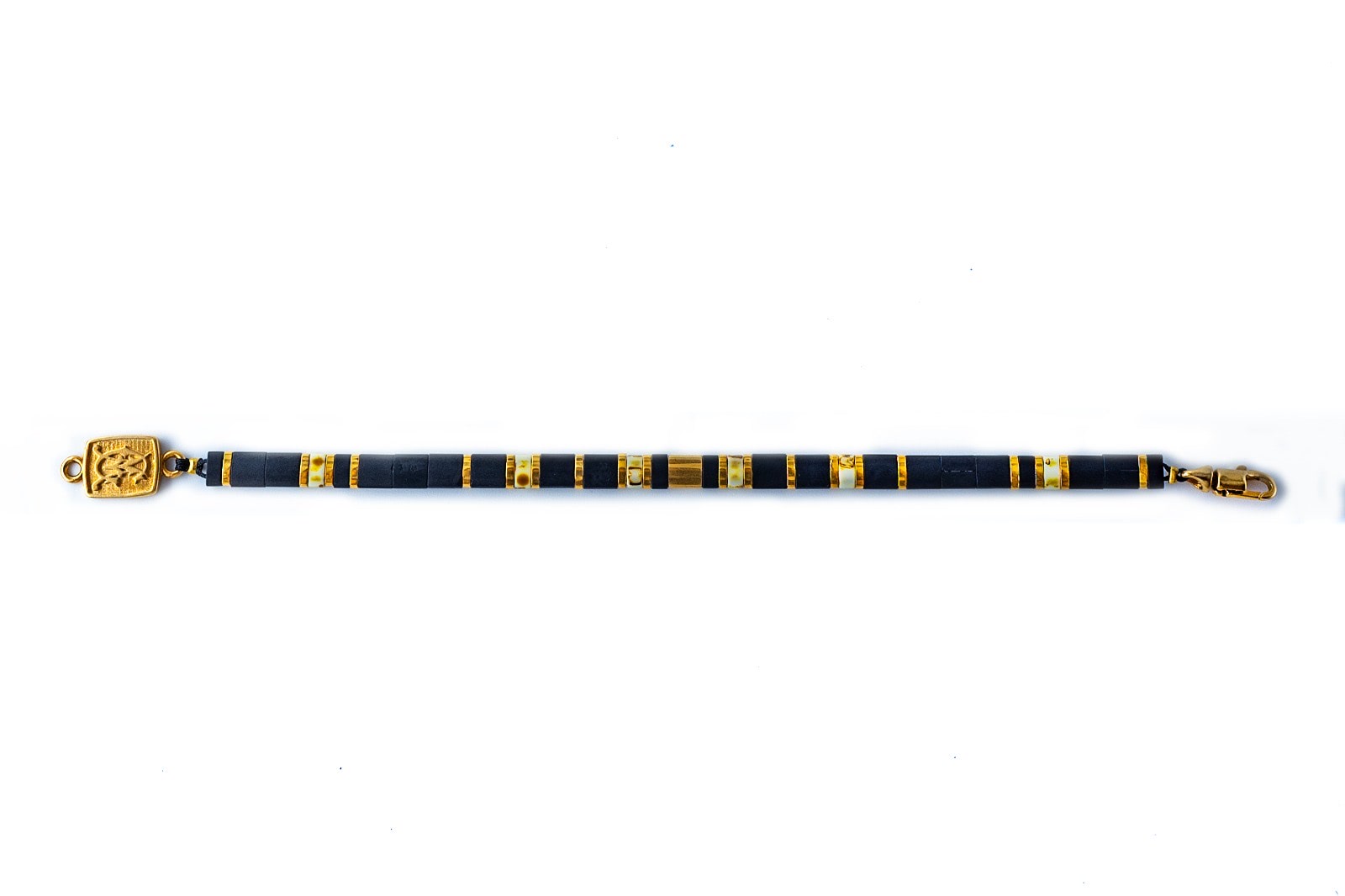 Bracciale con elementi in vetro “Miyuki ” Giapponese   placcati 24K ,chiusura in bronzo Vintage