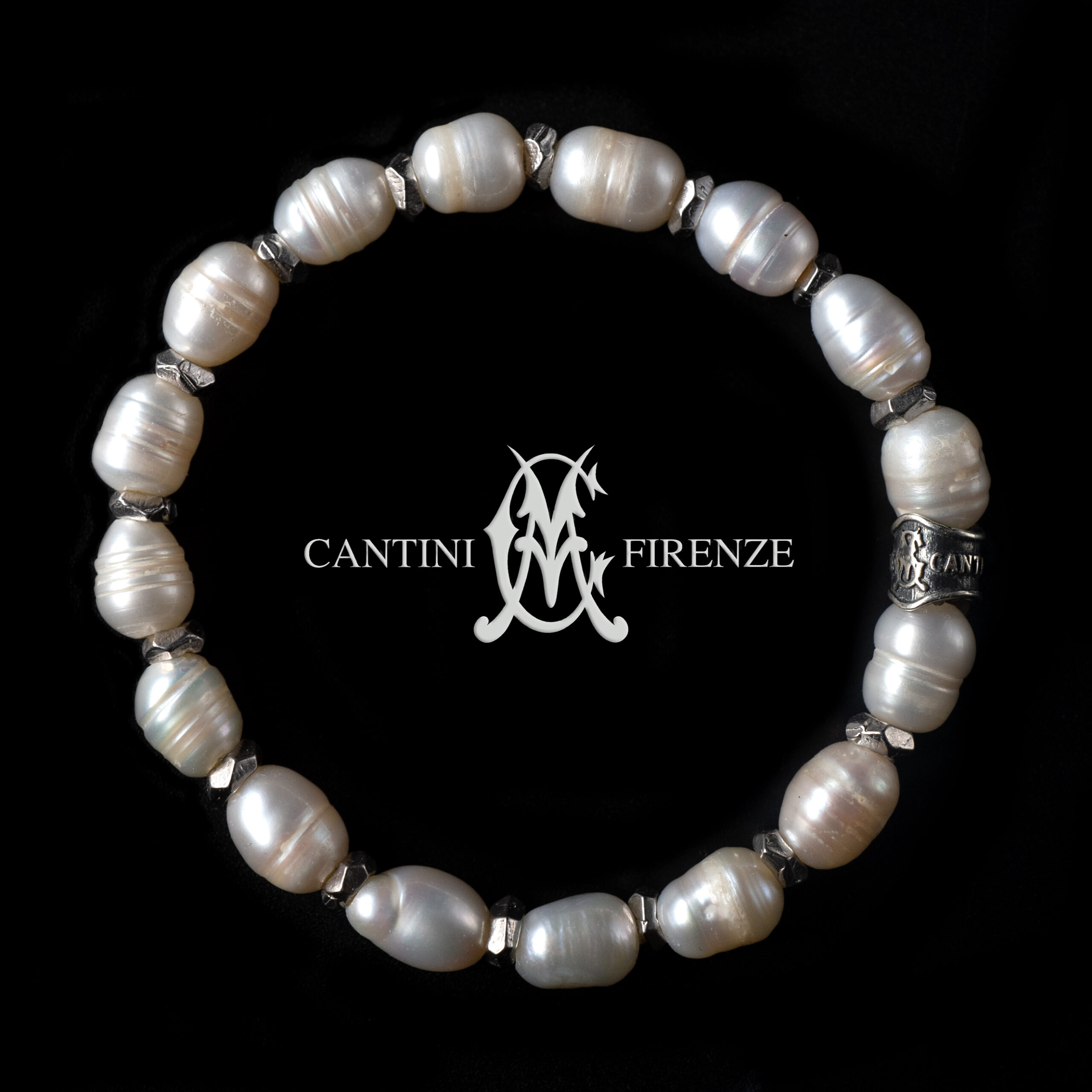 Murano glass bracelet , freshwater baroque pearls, Venetian Murrine beads White bronze , Korean-made elastic very durable Handcrafted creation, entirely handmade, 100% Made in Florence