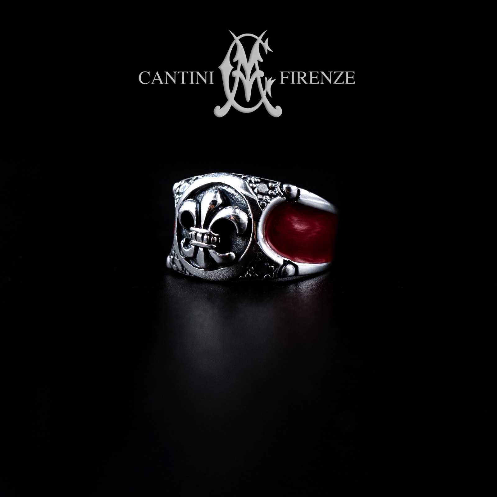 925 silver ring with red enamel